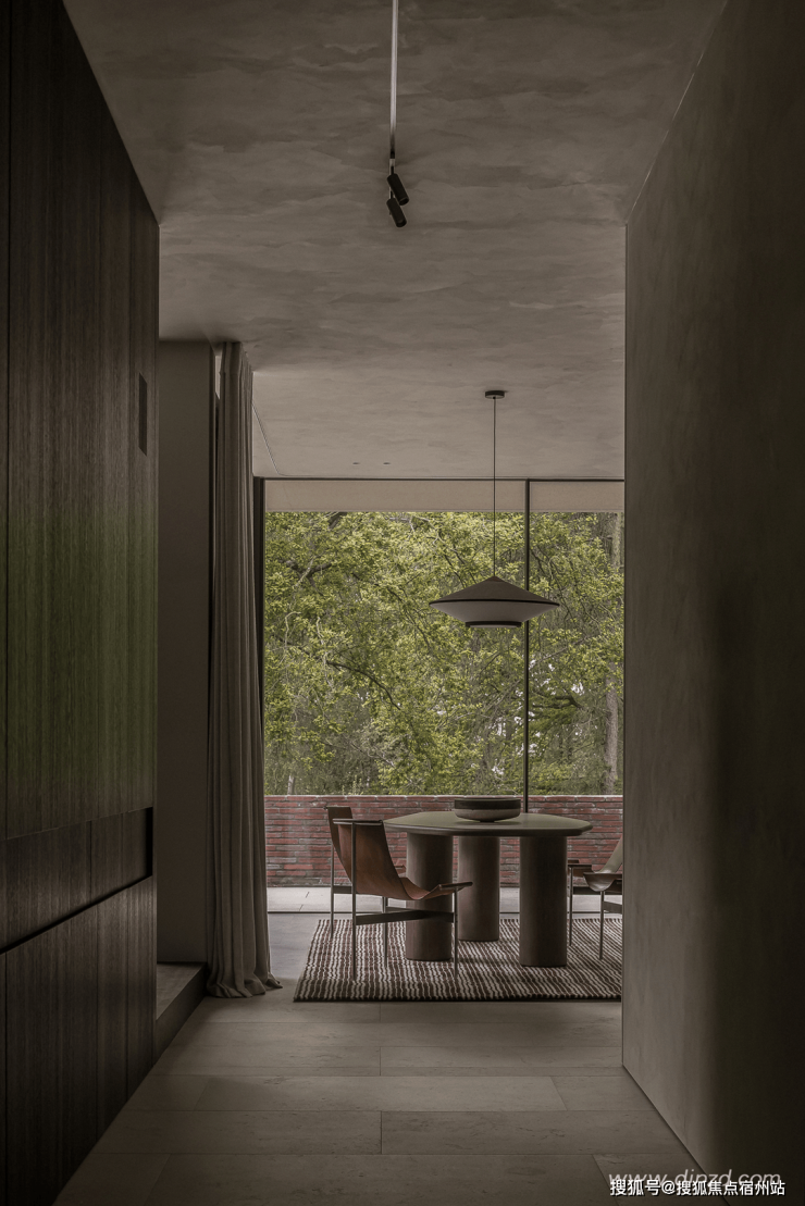 开阔的布局中形成恰到好处的亲和感,自然材质的温润触感与低饱和的色彩搭配,令人安心的聚谈随光前行。