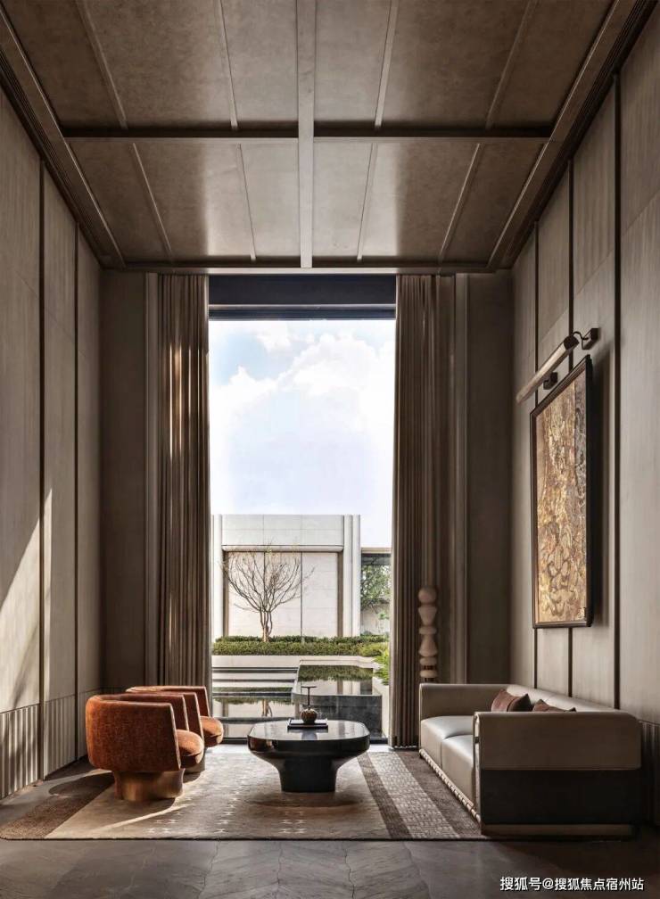 漫步其间,揽风入怀,树影斑驳而水声潺潺。以自然光感去创造时间驻留感,营造充满宁静的归家精神游廊,通过对光线、材质与空间的创新组合,实现光影的呼吸与空间的叙事,给予尊崇而愉悦的感受。