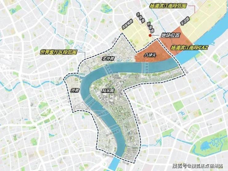 地块毗邻上海总体规划的中央活动区CAZ+外滩—陆家嘴世界客厅及15.5公里杨浦滨江门户核心。