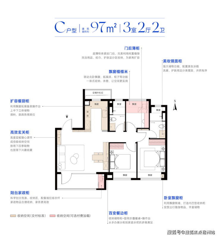 通过系统化的收纳设计,每个空间的储物能力都得到了显著提升。以60L容量的24寸行李箱为参照:97m²C户型整体交付柜体总容量约12m³,相当于足足200个行李箱。这种对空间的高效挖掘与利用,轻松解决了业主的储物难题。