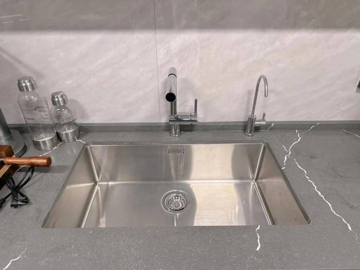 水槽采用的是 铂浪高不锈钢大单盆:配合抽拉式水龙头,轻松洗刷。底下安装了末端净水康丽根或同等品牌。