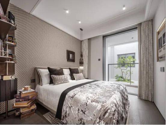 同时,酒店式入户大堂溯源海派经典,融入 古铜色金属格栅、海派拼花(首层和地下大堂)、海派复古压花玻璃等海派表达,让人文感满满。
