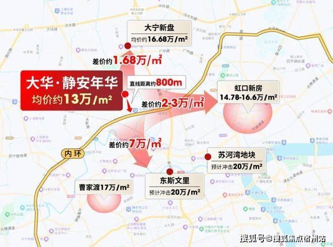 放眼整个静安区,曹家渡17万/㎡,大华静安年华售楼处电话:400-8266-670✅✅东斯文里和苏河湾项目预计冲击20万/㎡,和大华·静安年华高层差价预计近7万/㎡。
