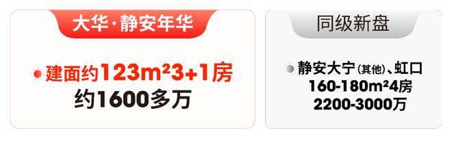 4房同样如此,市面同类产品普遍建面160-180㎡,大华静安年华售楼处电话:400-8266-670✅✅总价2200万起步;大华静安年华售楼处电话:400-8266-670✅✅大华·静安年华123㎡“3+1”房,总价1600多万,既满足大家庭“一步到位”的需求,又大幅降低了改善成本。