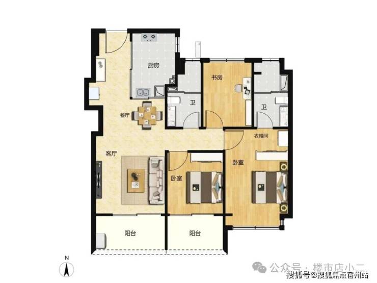 创新的南向双阳台设计,实现了“会客+晾晒”的自由分区。