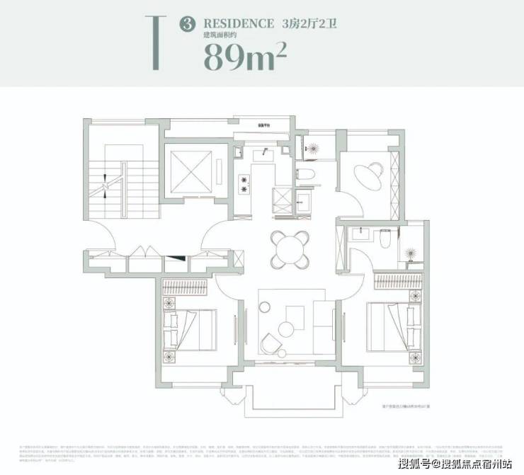 正三面宽朝南,观景阳台+满飘窗配置,提高实用空间,也拓展视觉体验。
