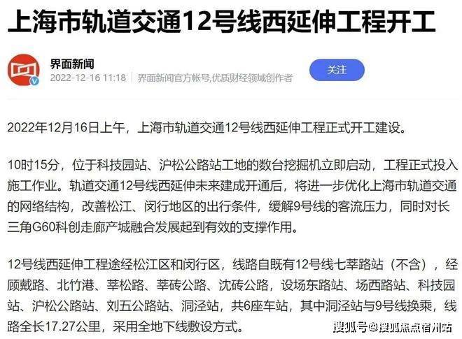 目前12号线西延伸正在加速推进,上海保利西郊和煦官方售楼处电话:400-1185-086√√√【已认证】预计2027年底开通试运营。12号线西延伸在松江境内从G60云廊沿沈砖公路,东西向穿过洞泾,设沪松公路和刘五公路设站,在洞泾站与9号线交汇。
