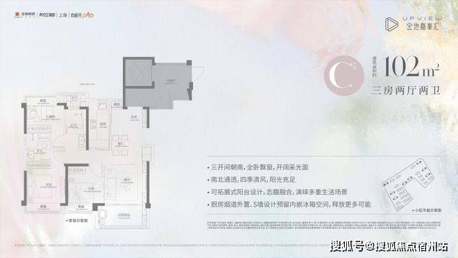 以及我们的 建面约102㎡(C户型)三房两厅两卫,不仅保留了其小户型所有的优势,更增强了空间感和舒适度!
