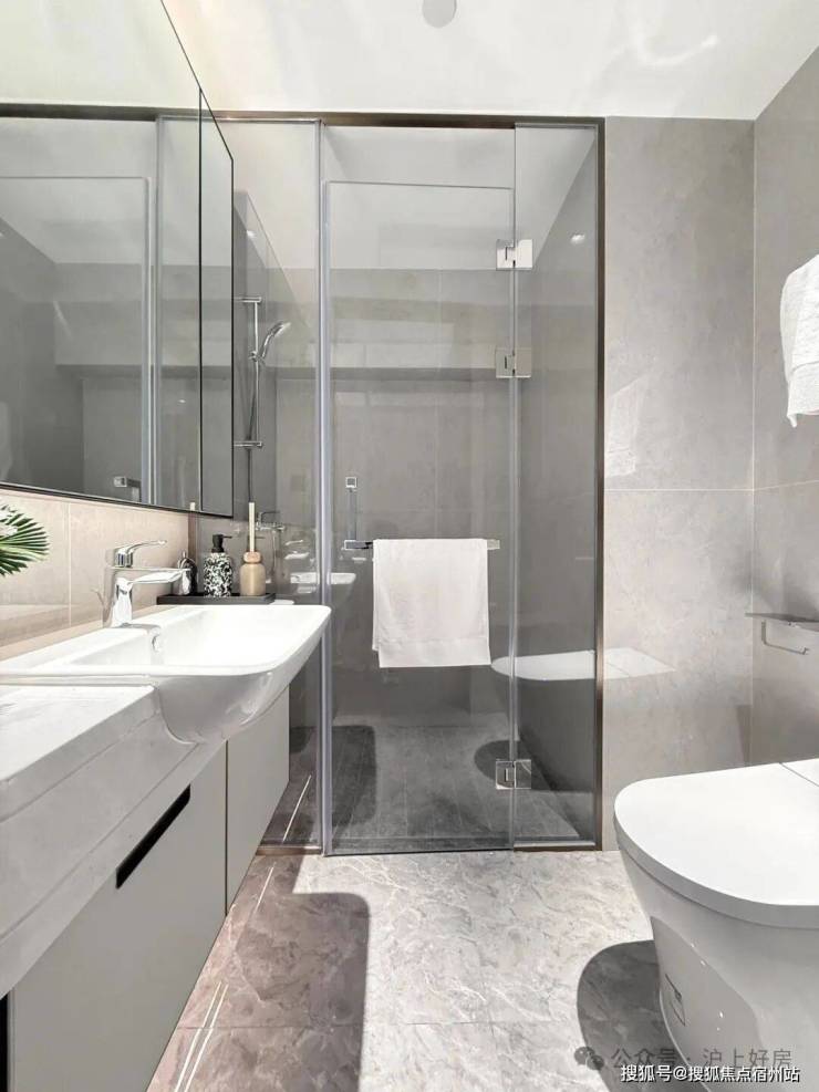 尤其主卧星级套房,配置独立衣帽间、书房,奢华主卫四分离,双台盆+淋浴区+大浴缸+智能马桶,私密性&奢适度无敌;