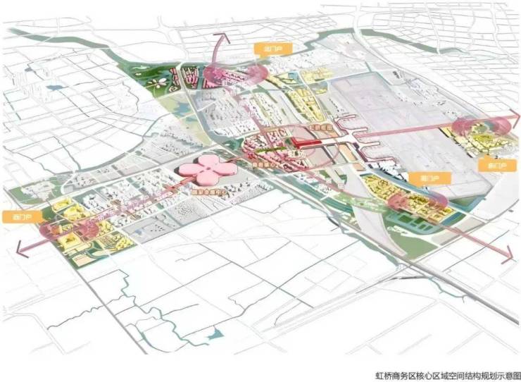 2009年,虹桥扩展至88平方公里,以国家会展中心为核心引力磁场,推动大虹桥从综合交通枢纽向中央商务区转型,打造全球产业赋能聚变的国际中央商务区。