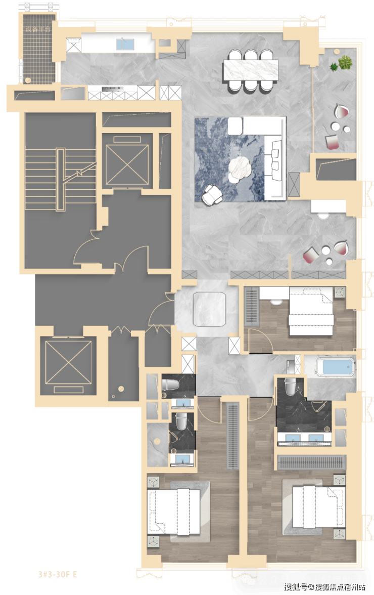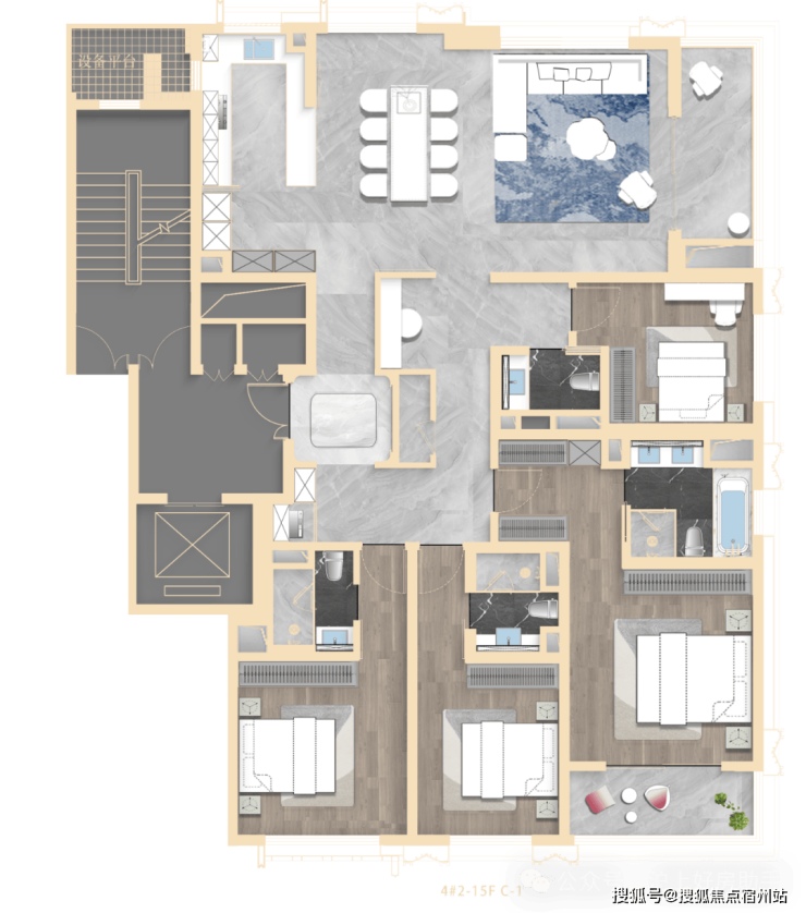 1#地块由3栋超高层组成+1栋高层, 其中1#楼建筑高度达165米!(超过海泰北外滩的160米和华侨城苏河湾双子塔的150米了)