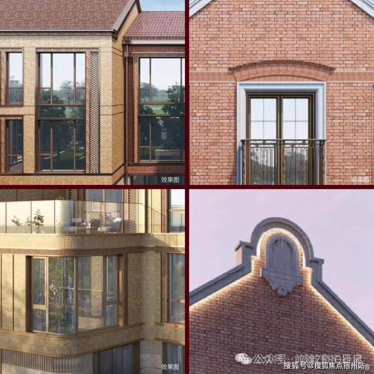 例如,在社区入户,目前已经完美呈现出来的,有强烈视觉冲击的立面 大量的红砖、红洞石及大面积的落地弧形玻璃搭配的相得益彰,整个门头既有厚重的历史感,又不失极简主义的现代美。
