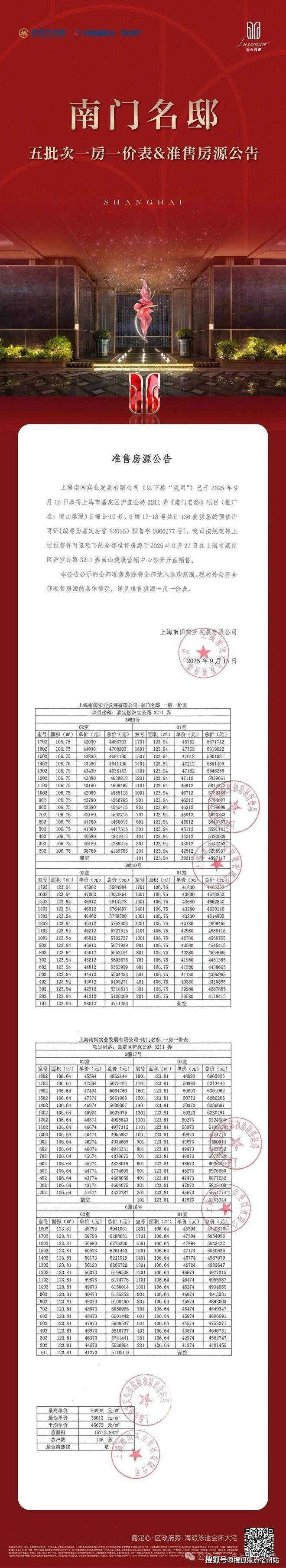 南山璞缦售楼处电话4008569058☑️☑️最新消息:嘉定封面作品「南山璞缦」项目五期加推105-123㎡3房户型,共136套房源,过会均价均价45675元/㎡;另前期少量105-198㎡3-4房在售,总价365万起,样板间开放中!线上提前预约!南山璞缦售楼处电话4008569058☑️☑️