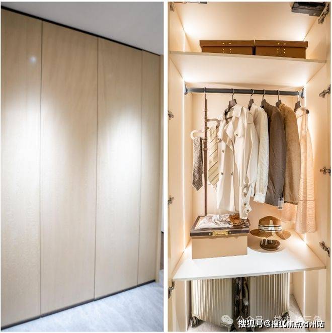 日常随手取用的小物件、女主人的高筒靴,吸尘器、扫地机器人乃至行李箱等大件物品,均有专属收纳空间。更贴心的是,冰箱、洗烘套装等家电也被巧妙嵌入柜体,实现“隐藏式收纳”,让整个柜体外观更显整洁统一,与空间风格融为一体。