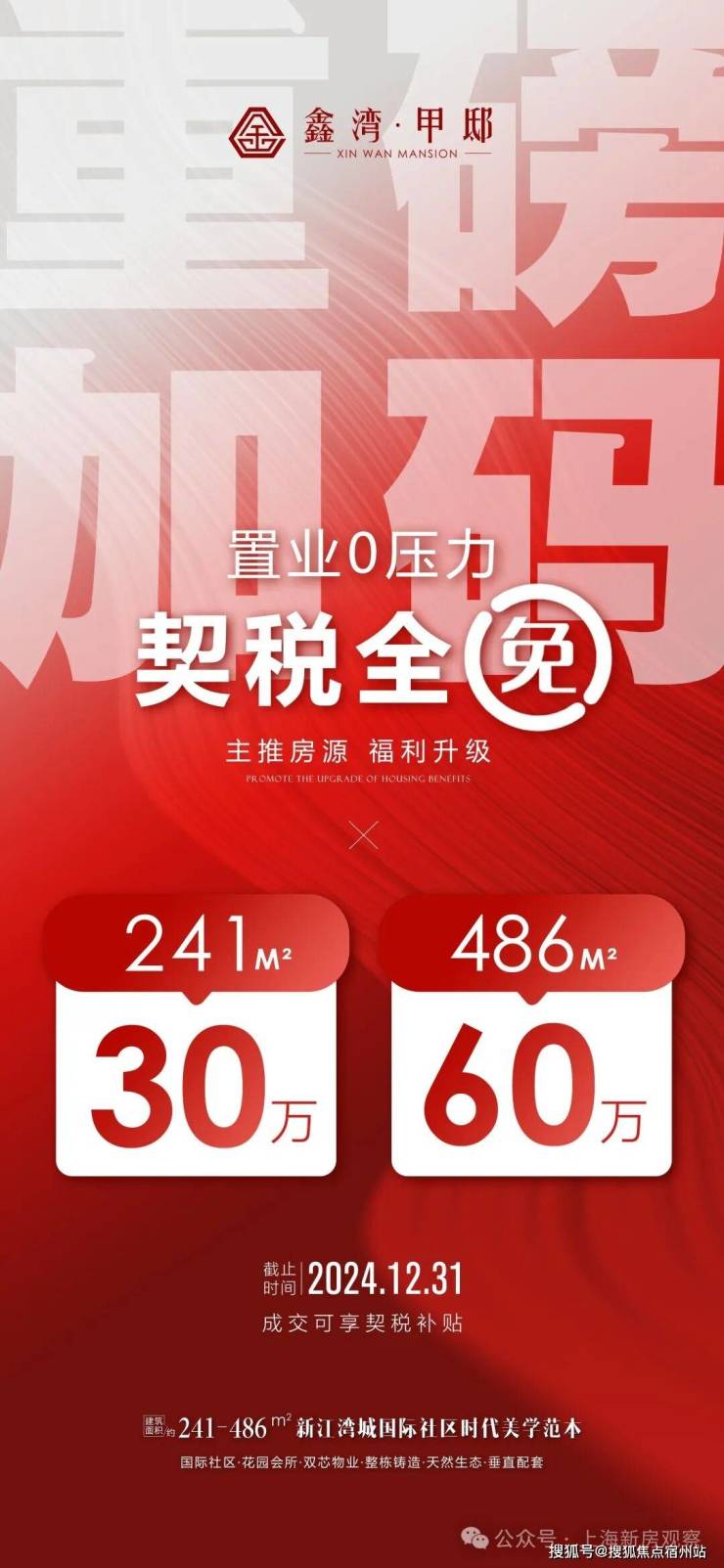 新江湾城【鑫湾甲邸】建面约240-480㎡ 奢阔行政公馆 !总价1150万起!严格线上预约制看房,看房私聊小编,尊享一对一VIP贵宾直通服务!