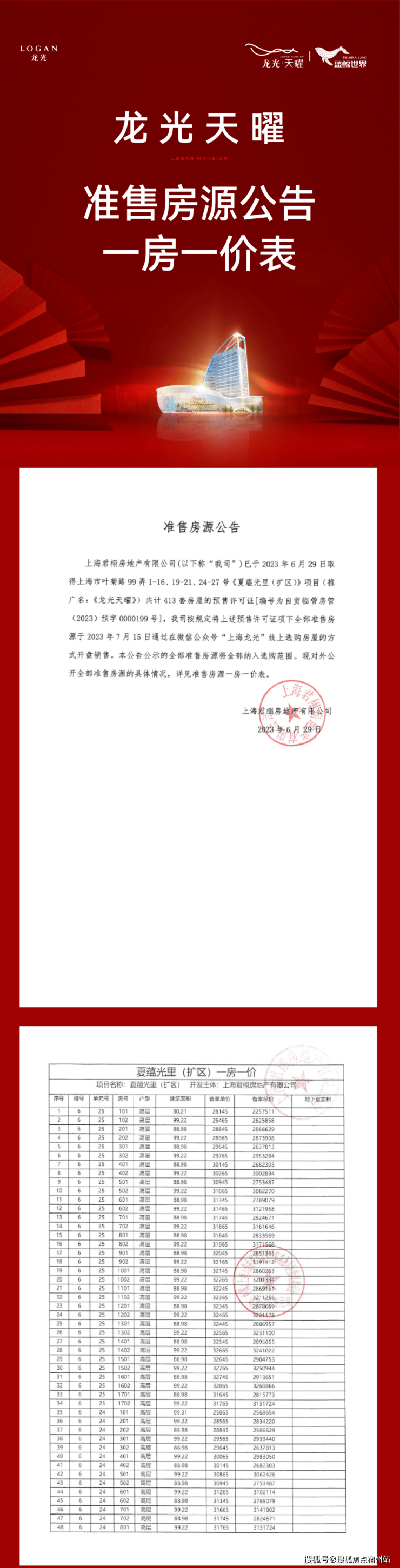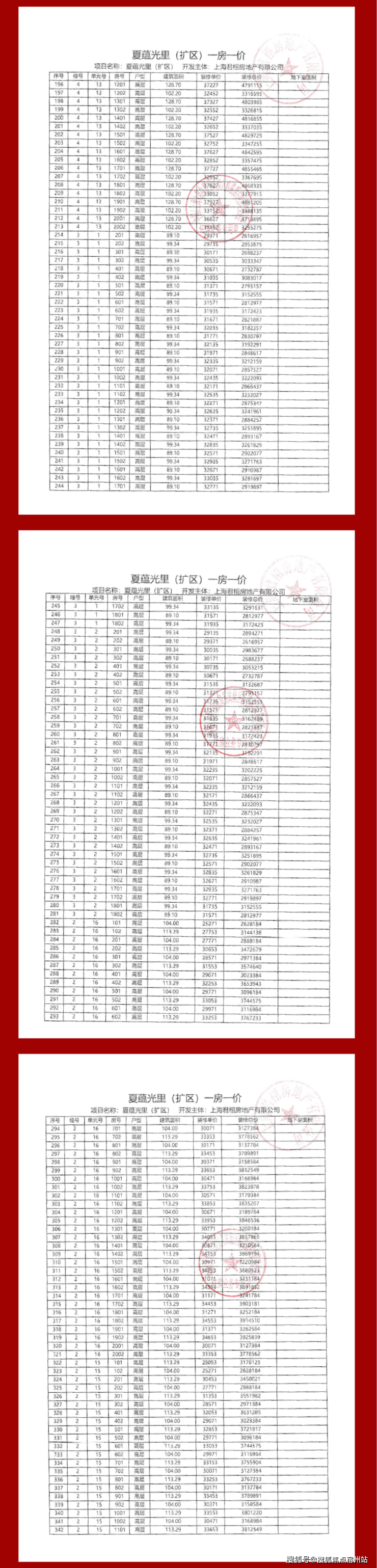 项目一房一价表