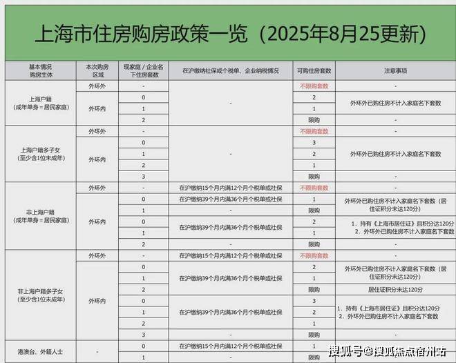 非沪籍居民家庭/单身人士:社保/个税满1年可在外环外不限购;满3年可在外环内限购1套