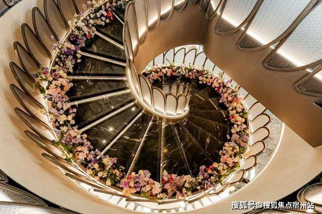 摩登旋转楼梯。楼梯已经贴上了定制的叶片状玻璃栏杆,朦朦胧胧的透光感,将会所旋梯的审美力,又拉上一个全新的高度。象屿天宸雅颂售楼处电话:400-8894-638(户型详解专线)