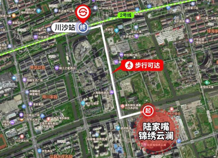 除此之外,陆家嘴锦绣云澜位于川沙首站,距离川沙站直线约750米,步行可达!(数据来源:百度地图)