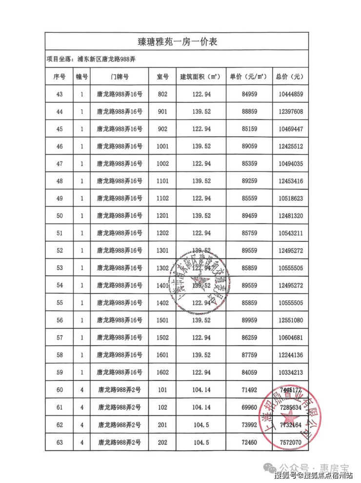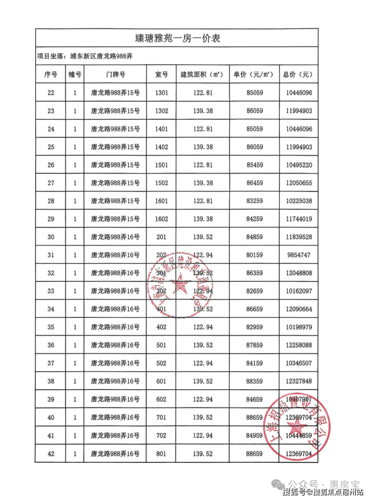 一房一价如下: