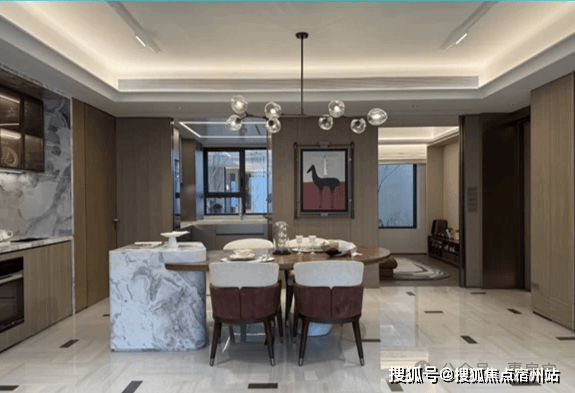 餐厅区域可轻松放置6人位餐桌,两侧还预留储物柜以及餐边柜空间 ,其实哪怕摆放一个8人位的大圆桌,也绰绰有余!