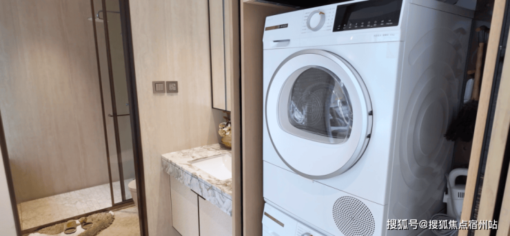次卫采用四段式布局,设置独立家政间,并且洗衣机和烘干机同样也是交付标准(博世或同等品牌)!