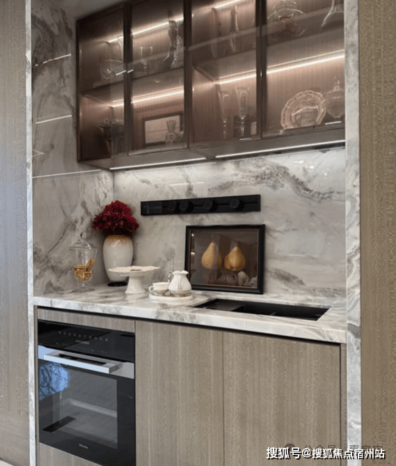 另外蒸烤一体机放置在餐边柜位置,且升级为美诺品牌;