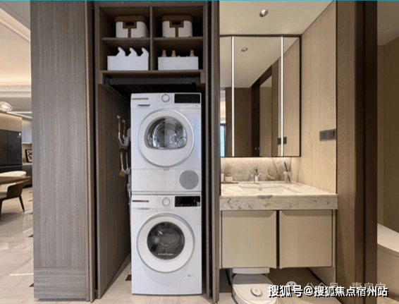 比较有特色的是, 预留了独立家政间区域,甚至还交付了博世洗烘套件。