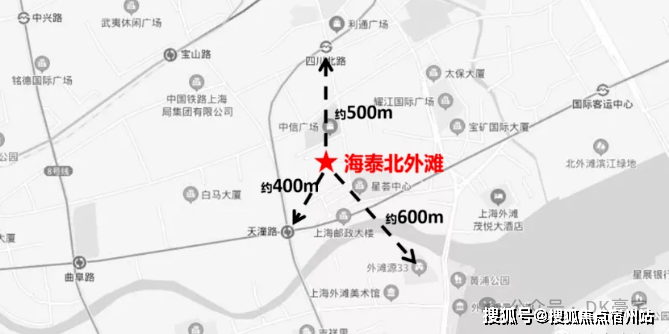 海泰北外滩位于虹口四川北路天潼路附近, 距离外滩源仅600米。