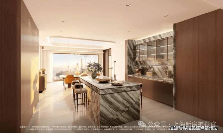 更细节的是,西厨吧台采用 “东方木纹石材” ,独特纹理与质感让每一次咖啡手冲都成为“生活美学的展示”。