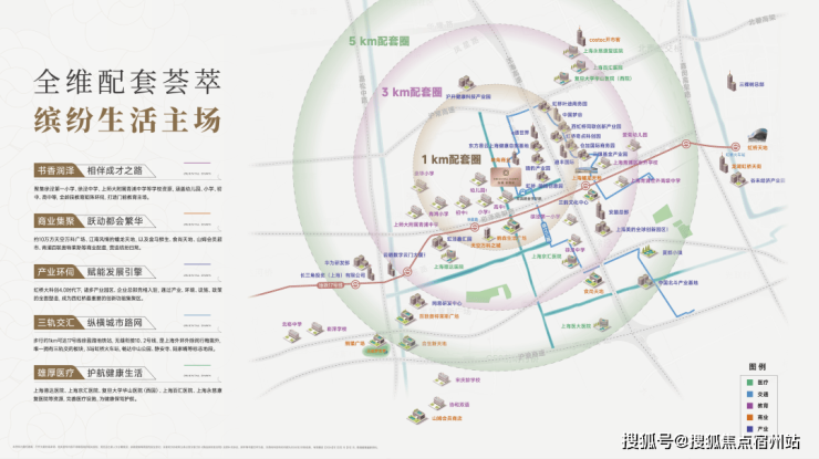 项目直线 3km范围内分布着7个商场,合生新天地等购物中心近在咫尺。向东约600米处,预计今年开业的长三角绿色智谷 Terrace Park 购物中心,作为大虹桥首个日式购物中心,计划引入 180余家商户品牌,届时将为居民带来全新的购物与休闲体验。此外,通过17号线向东,2站可达天空广场,3站直达蟠龙天地,周边还有百联奥特莱斯、元祖梦世界、山姆会员店等大型商业综合体,满足日常生活的一切所需,让购物、娱乐、休闲一站式轻松实现。