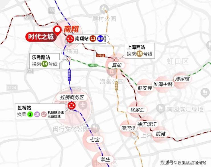 项目位于嘉定区南翔镇嘉前路288弄,这个位置对通勤族来说相当友好 。距地铁11号线陈翔公路站约900米,步行可达。未来还将受益于 嘉闵线南翔站(在建),4站直达虹桥商务区。