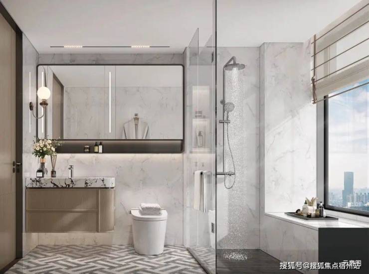 在细节上, 玄关柜背板采用“白雪公主”奢玉,卫生间镜柜采用镀铬边框,主卧镜柜内还贴心配备了美妆冰箱。这些细节体现了开发商对现代生活需求的深入理解。