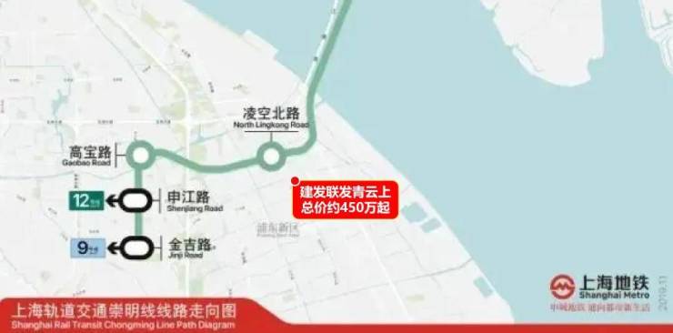 崇明线一期预计2026年通车,地铁开通后2站申江路可换乘12号线、3站金吉路可换乘9号线,交通便利,可满足日常通勤需求。