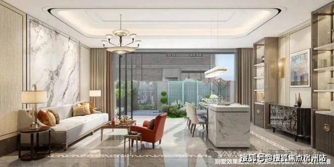 得益于大面宽,该户型客餐厅横厅布局,这在风貌界不多见,✅✅興華里售楼处电话:400 - 882 - 4258✅✅客厅整体面宽达6.5米(K户型面宽约8.7米),再加上一层约3.4米层高及南向采用大面积落地玻璃,客厅通透明亮。