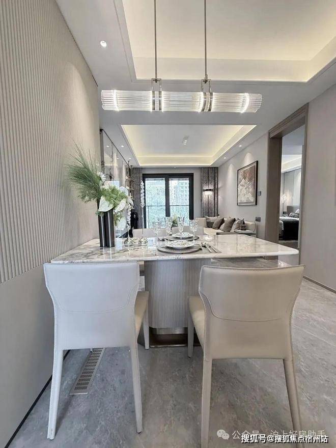 张江金茂府售楼处预约电话:400-8824-198餐厅则北连现代化厨房,南北通透的采光设计,让美食与光影共舞。设计师还巧妙地将传统直墙转化为流畅的S型曲线,不经意间创造出额外的凹槽空间,可以安置冰箱或定制柜体,极大提升厨房的收纳与操作便捷性。张江金茂府售楼处预约电话:400-8824-198