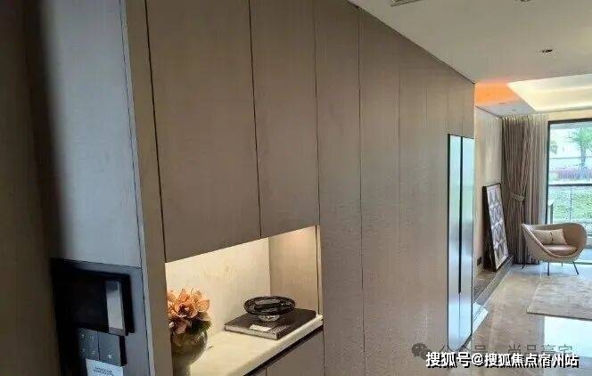入户后,第一眼就可以看到玄关柜采用石材台面,下至标配鞋柜精灵,在S墙创新设计后,首批次房源更是额外赠送西门子双开门冰箱,这在以往可是上海千万级新房的交付标准: