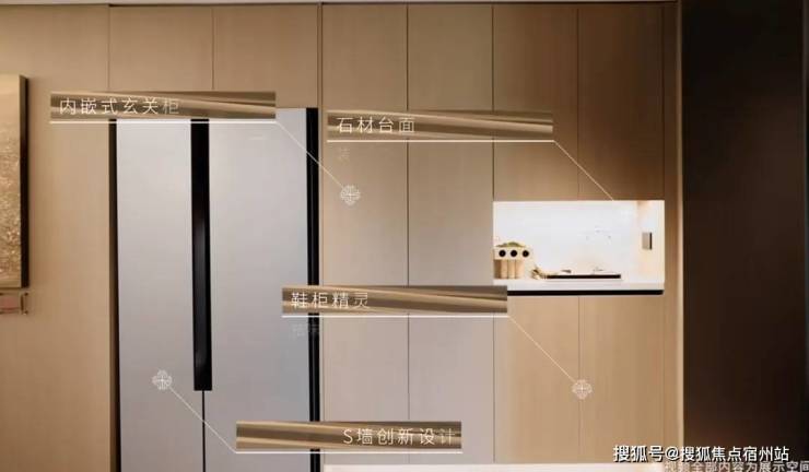 入户后,第一眼就可以看到玄关柜采用石材台面,下至标配 鞋柜精灵,在S墙创新设计后 ,首批次房源更是额外赠送西门子双开门冰箱 ,这在以往可是上海千万级新房的交付标准: