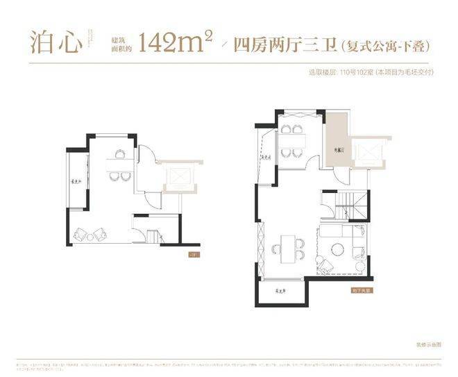 项目叠墅户型有建面约142㎡下叠,建面约139㎡上叠。