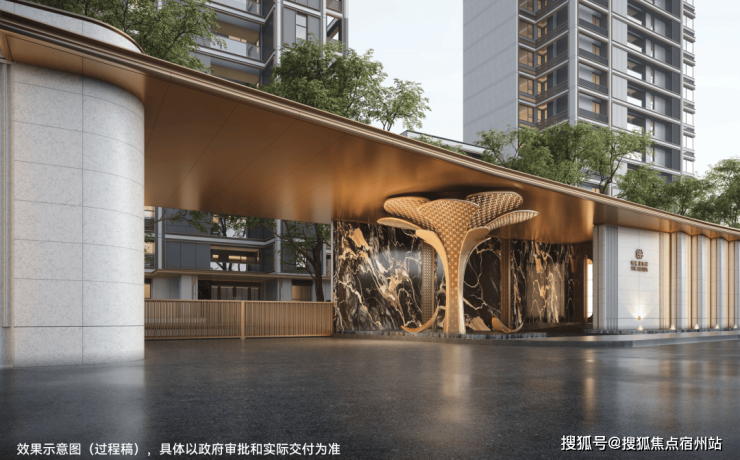 像苏州地王绿城玫瑰园,引入如凡尔赛宫的孟莎式屋顶的环岛式落客区,采用古罗马柱廊设计,整体空间超100米,法式宫廷气场非常恢弘;入口空间源自凡尔赛宫镜厅的宝格绿奢石,就像绿色“珠宝盒”,归家的高贵奢华感被拉满。