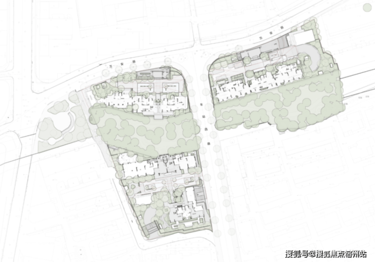 绿城在三个地块之间,做了精巧的构思。项目保留了原生在地的香樟,在地块间打造香樟聚场,这些公共绿化将三个地块串联为一座有活力的城市单元。