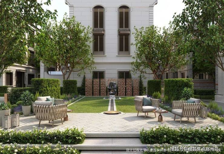 沿着恢弘的轴线漫步,修剪整齐的绿篱与喷泉构成完美的对称美学。客户在法式长椅上小憩,远处香榭丽舍的浪漫与尚美图案馆的海派图案底纹在此碰撞。傍晚时分,园林灯光渐亮,每一帧画面都如油画般动人。