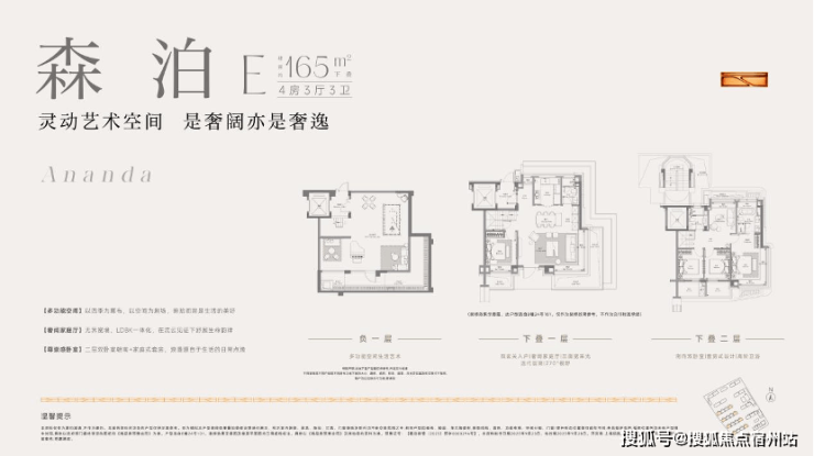 建面约165㎡下叠 预计使用率最高约148%、三向采光地下、LDBKG双入户流线、南北通透主卧套房