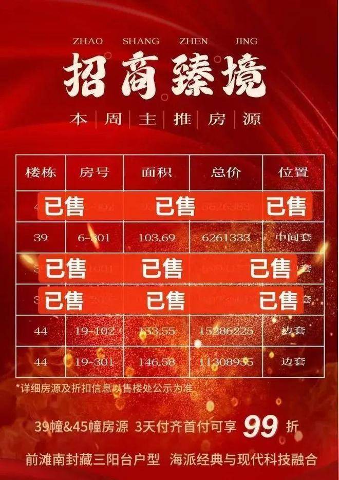 招商臻境丨源上二期,7月16日认购!本次二期新推39、44两幢房源。 本次房源均价68668元/㎡,主力建筑面积约105㎡惊艳“三阳台”3房,更有建筑面积约146-152㎡低密滨水叠墅。建档优惠99.5、认购优惠99.5,目前优惠至多可享受到99折!。