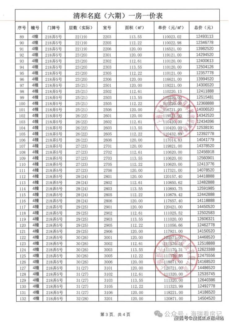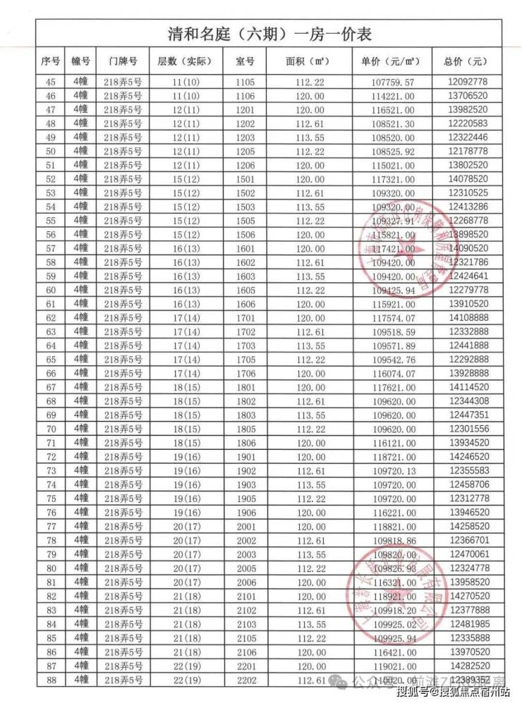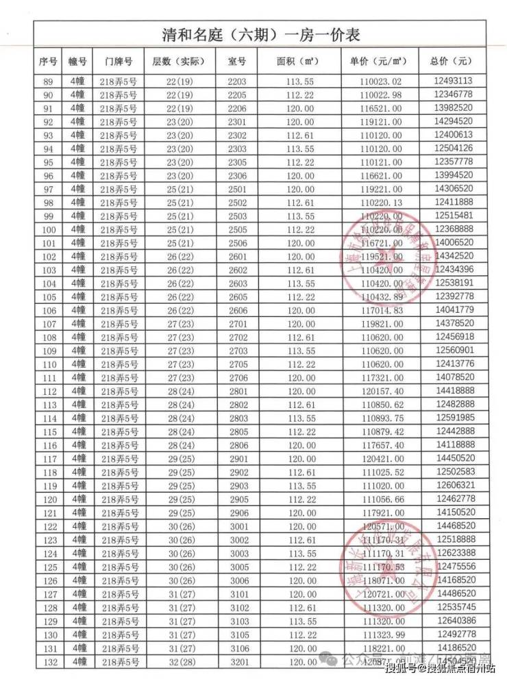 一房一价表如下: