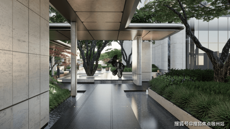 一路定制的游园式归家动线,让业主目之所及均为风景;中央会客花园内,绿植四季皆景,中央庭院景观轴上,则布局双下沉式庭院增添社区精致错落的氛围,提升归家仪式感的同时,给予业主家的温馨。