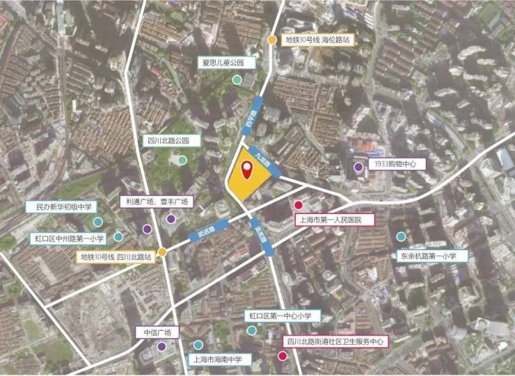 该地块位于虹口内环内的嘉兴社区,就在第一人民医院北侧,南侧约200米就是北外滩,北侧即为瑞虹新城,项目直线距10号线四川北路站约400米,是今年虹口区非常重要的一个新房供应。