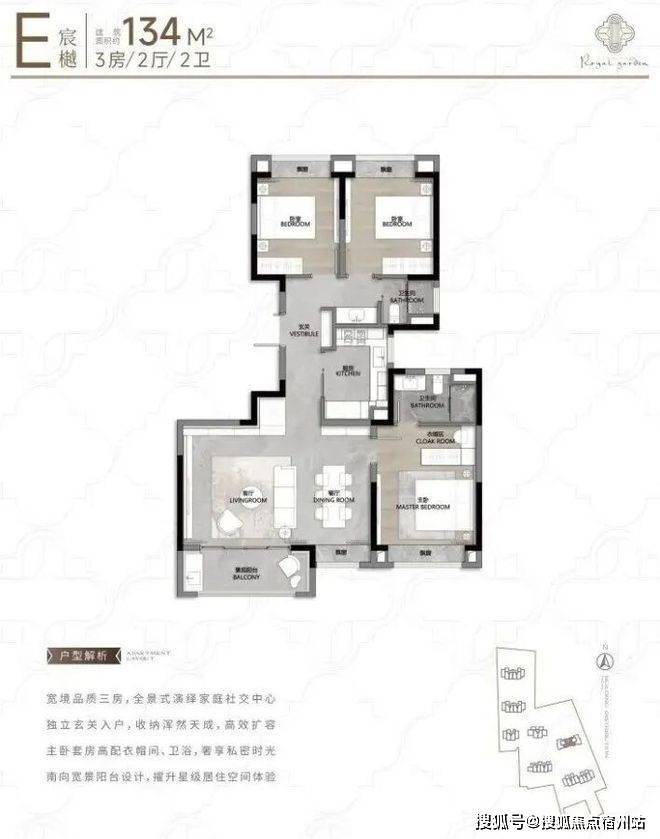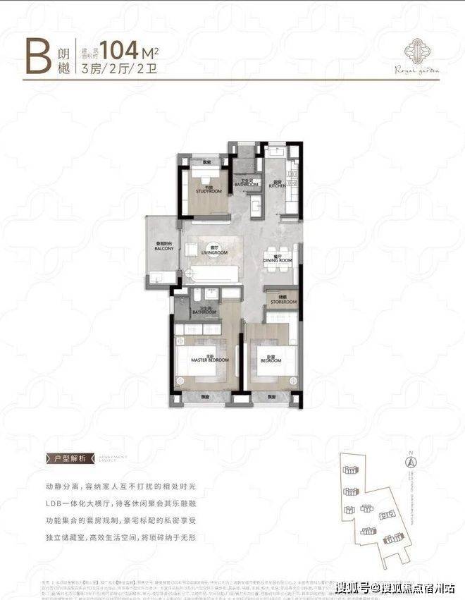 动静分离+客餐厅一体化设计,功能区和休息区互不干扰,客餐厅、厨房等公共活动区集中在一侧,卧室等休息区全部一侧,保证了私密性!