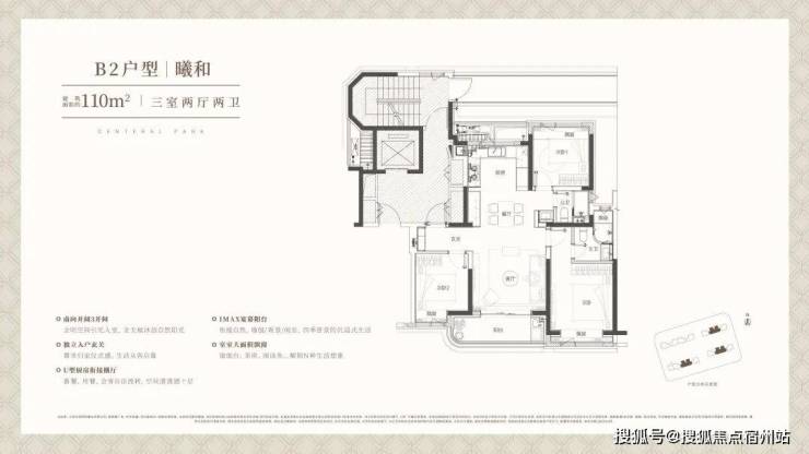建面约110㎡中间套竖厅户型,同样也是标准的南北通透飞机户型,整体室内的采光、尺度感、通风都相当出色。非常适合 一家三口、年轻夫妻 的全生命周期需求!