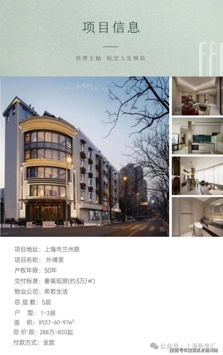 外滩里 服务式公寓位于杨浦区内环内的兰州路上,近轨交12/18号线平凉路/江浦公园站,周边有渔人码头、北外滩来福士及瑞虹商圈。已正式面世,项目总高5层,共提供36套37-97平studio/一房及两房公寓。